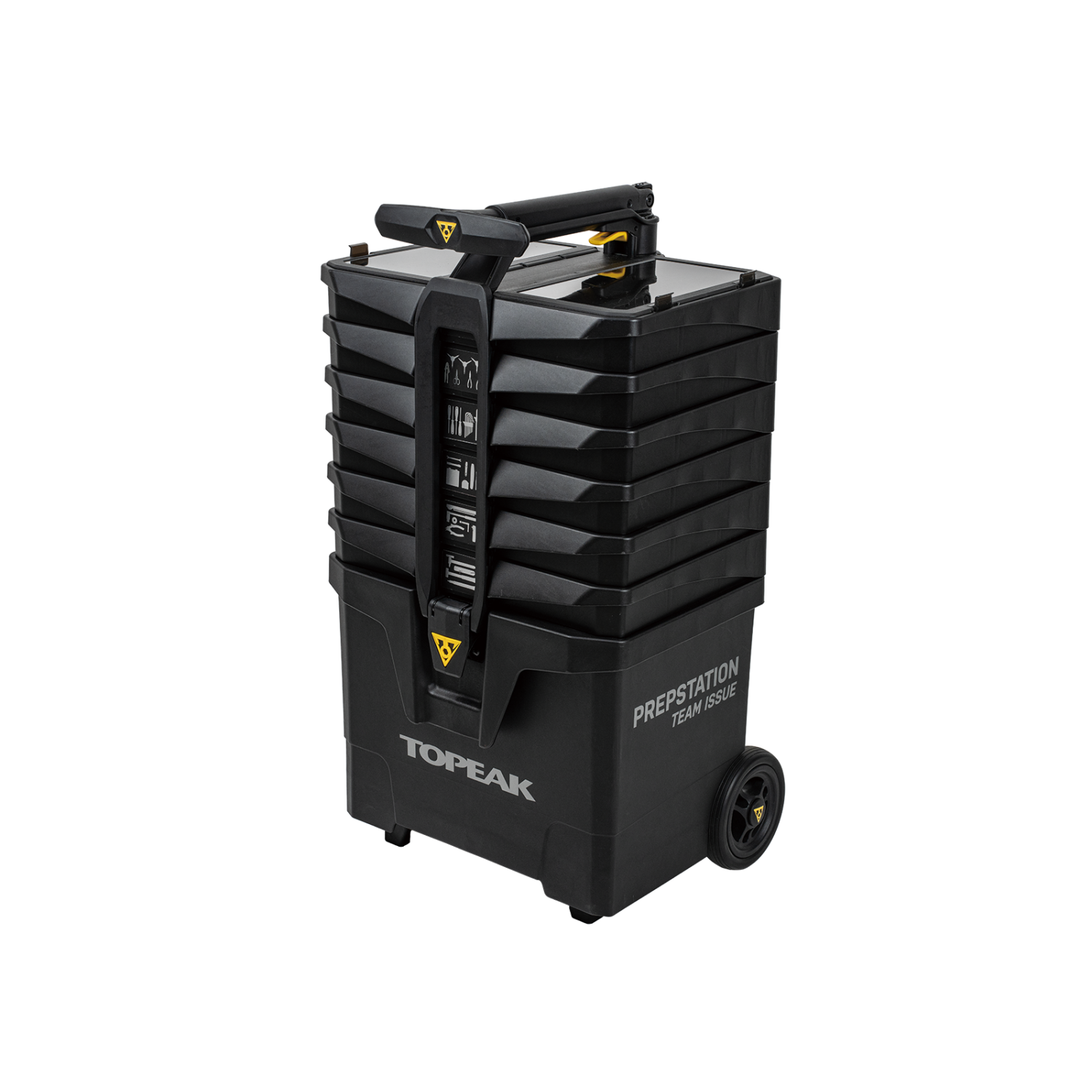 Carro de herramientas de gran movilidad con ruedas de 5" para facilitar su uso. Los 7 compartimentos de herramientas contienen 48 herramientas para bicicletas de calidad profesional. Para una mayor estabilidad, la distancia entre ejes puede extraerse fácilmente para ampliar la superficie de apoyo. El asa de elevación con pulsador abre las bandejas de herramientas para reparaciones rápidas y sencillas. HERRAMIENTAS: 48 HERRAMIENTAS HEX- Llave rápida YHex 2 / 2,5 / 3 mm (TT2597) - Llave rápida YHex 4 / 5 / 6 mm (TT2598) - Juego de llaves DuoHex DX 1,5 / 2 / 2,5 / 3 / 4 / 5 / 6 / 8 / 10 mm (TPS-SP67) TORX® TOOLS- YTorx Speed Wrench T10 / T25 / T30 (TT2599) - Torx® Wrench Set DX T10 / T15 / T20 / T25 / T27 / T30 / T40 / T45 / T50 (TPS-SP66) FLAT / PH TOOLSScrew Driver Set PH2 / H2 / H3 / 5mm Flat (TPS-SP68) CHAIN TOOLS- Porta Cadenas (TPS-SP55) - Power Link Pro (TT2560) - Cadena Master Team Issue (TPS-SP50) - Gancho de cadena e indicador de desgaste (TPS-SP09) HERRAMIENTAS DE FRENO: Herramienta de rectificado del motor (TPS-SP53) HERRAMIENTAS DE PEDAL: Barra de pedal Pro (TPS-SP56) HERRAMIENTAS DE CASSETTE: Látigo de cadena (TPS-SP51) - Llave dinamométrica 40Nm con herramienta para anillos de seguridad (TPS-SP52) HERRAMIENTA PARA MANILLAR: Herramienta para brazo de manivela (TPS-SP54) ALICATES- Cizalla de electricista de 5-1/2" (TPS-SP61) - Alicates de punta larga de 6" (TPS-SP62) - Alicate de 7" (TPS-SP65) - Alicates de corte diagonal de 6" (TPS-SP63) HERRAMIENTAS PARA CABLES- Juego de enrutado interno de cables (TPS-SP60) - Alicate para cortar cables de 7" (TPS-SP64) TUBE & TIRE TOOLS- Shuttle Lever Set - Tire Lever Team Issue (TPS-SP59)
