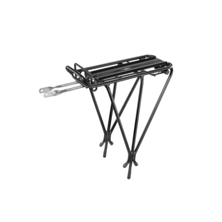 Válido para ruedas de 26", 27,5" (650B) y 700C. Resistente portaequipajes trasero tubular de aluminio perfecto para viajes, desplazamientos más cortos o simplemente para hacer recados. Compatible con QuickTrack® para usar con cualquier MTX TrunkBag y cesta trasera. Material: 6061 T-6 hollow aluminum Máx. Capacidad: 26 kg Tamaño: 41 x 34 x 17 cm Peso: 625 g