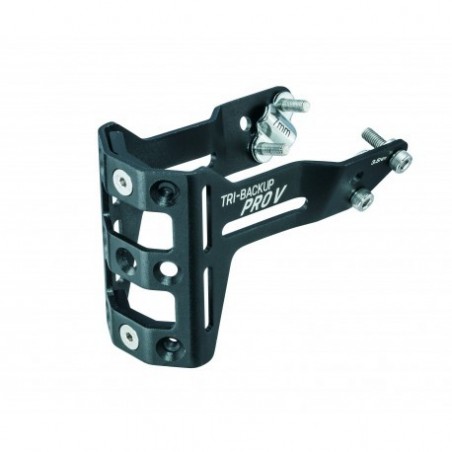 Para un triatleta no perder tiempo es fundamental y Tri-BackUp Pro I facilita el acceso a tu equipamiento. Se monta en la sección en "V" de los raíles del sillín y dispone de una gran variedad de combinaciones de accesorios dependiendo de cada carrera. Dos posiciones de montaje variando el ángulo. Material: Aluminio. Capacidad de hidratación: 2 botellas. Máx capacidad: 2.5 kg. Compatibilidad: Tri-BackUp Air Station, Tri-BackUp TubeBag, Tri-BackUp TireBag, Ninja TC Road, Ninja Pouch+ Road, Ninja CO2+, Tri-Cage. Tamaño: 11.8 x 8 x 6.9 cm. Peso: 97 g.