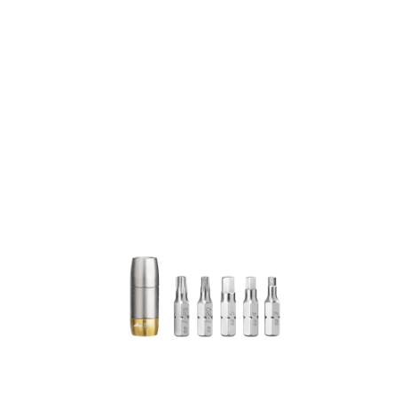 Este set de herramientas incluye un Torq Socket con valor de 5Nm que funciona con cualquier herramienta que disponga de una llave Allen de 5 mm. Tiene un límite para no sobrepasar los valores recomendados y así no dañar ninguno de los tornillos, componentes o partes de carbono. Funciones 5 PAR DE TORSIÓN PREESTABLECIDO 5 Nm (Tolerancia: +- 6%) Puntas Allen 3/4/5 milímetros Puntas Torx® T20 / T25 Estuche Polímero de grado de ingeniería Material de la herramienta Acero reforzado Tamaño 5,4 x 5 x 2,2 cm / 2,1” x 2” x 0,9” Peso 75 gramos/2,65 onzas Característica añadida Estuche